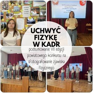 5 czerwca 2025 roku w I Liceum Ogólnokształcącym w Tomaszowie Lubelskim odbyło się podsumowanie VII edycji powiatowego konkursu na sfotografowanie zjawiska fizycznego „Uchwyć fizykę w kadr”. Do konkursu swoje prace zgłosiło 129 uczniów z 16 szkół podstawowych z całego powiatu. Uczestnicy nadesłali nietuzinkowe, wyjątkowe, ciekawe, autorskie zdjęcia zjawisk fizycznych. W konkursie wzięło udział sześcioro uczniów klasy VIII z naszej szkoły. Wyróżnienie za zdjęcie „Zorza polarna” uzyskała Anita Bucior. Gratulujemy, a wszystkim uczestnikom dziękujemy za wnikliwe obserwacje przyrody i uwiecznianie zauważonych zjawisk na zdjęciach.