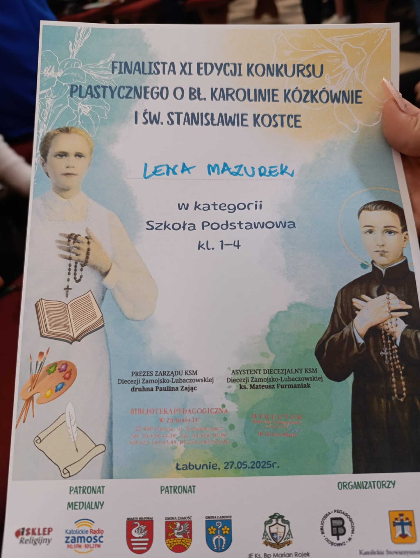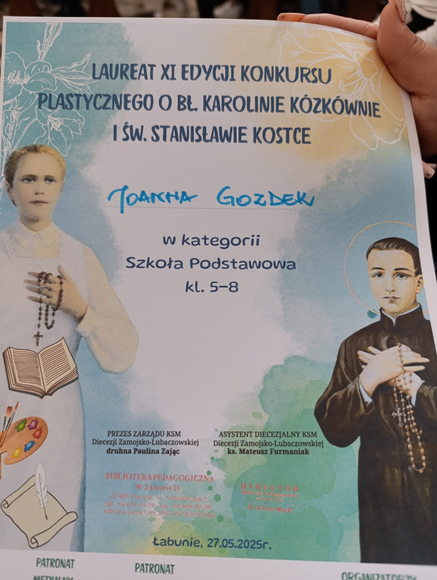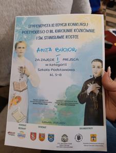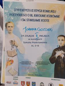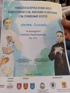 Sukcesy naszych uczniów w XI edycji diecezjalnego konkursu plastycznego i poetyckiego poświęconego bł. Karolinie Kózkównie oraz św. Stanisławowi Kostce