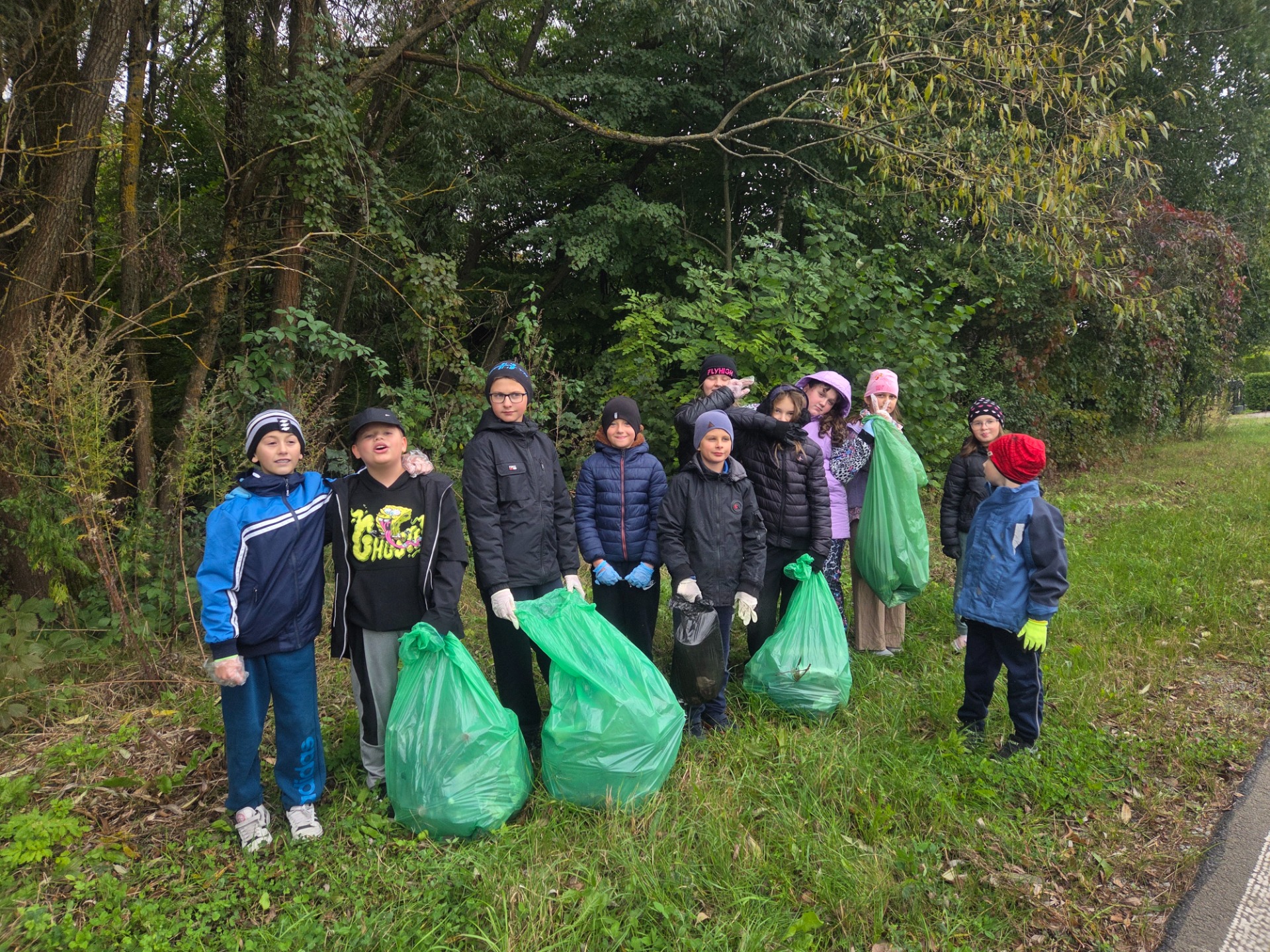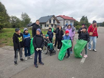 , wyruszyliśmy w teren, aby posprzątać miejsca najczęściej uczęszczane przez mieszkańców naszej miejscowości – okolice szkoły, przystanki autobusowe, pobliski las