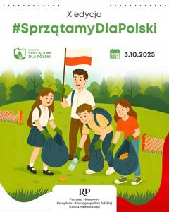 oraz troska o nasze najbliższe środowisko. Tegoroczna już X edycja akcji #SprzątamyDlaPolski została objęta Honorowym Patronatem Prezydenta Rzeczypospolitej Polskiej Karola Nawrockiego!