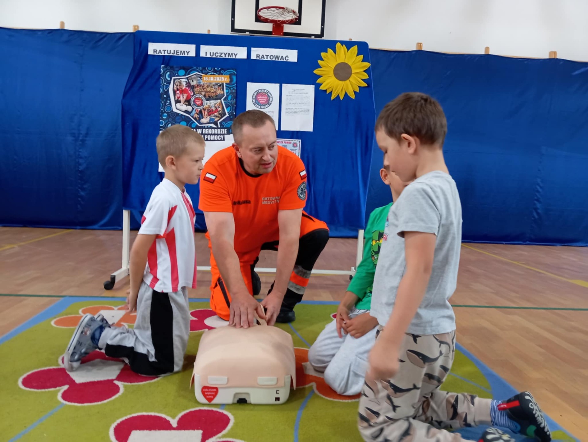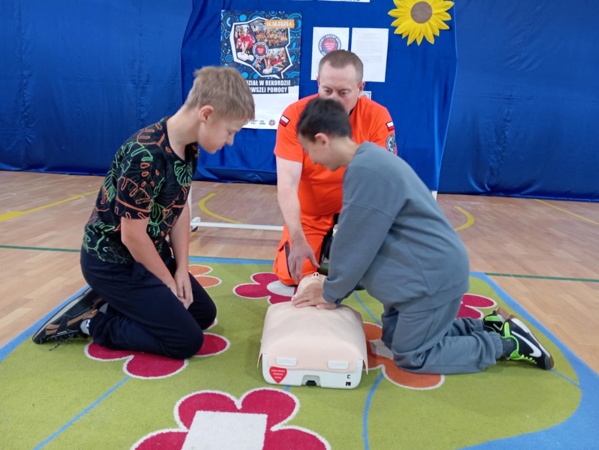 W dniu 16 października o godzinie 12.00 do 12.30 odbyło się w naszej szkole wyjątkowe wydarzenie, a mianowicie 9. edycja bicia rekordu w jednoczesnym prowadzeniu resuscytacji krążeniowo-oddechowej (RKO) w ramach Programu "Ratujemy i Uczymy Ratować"