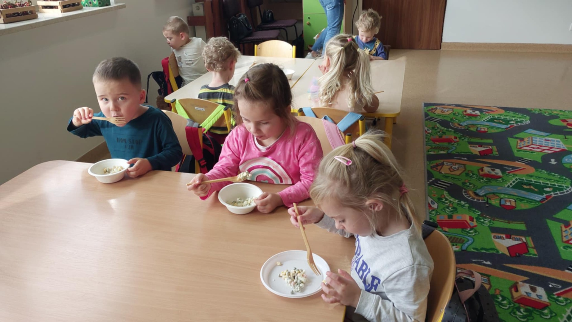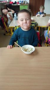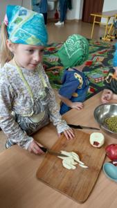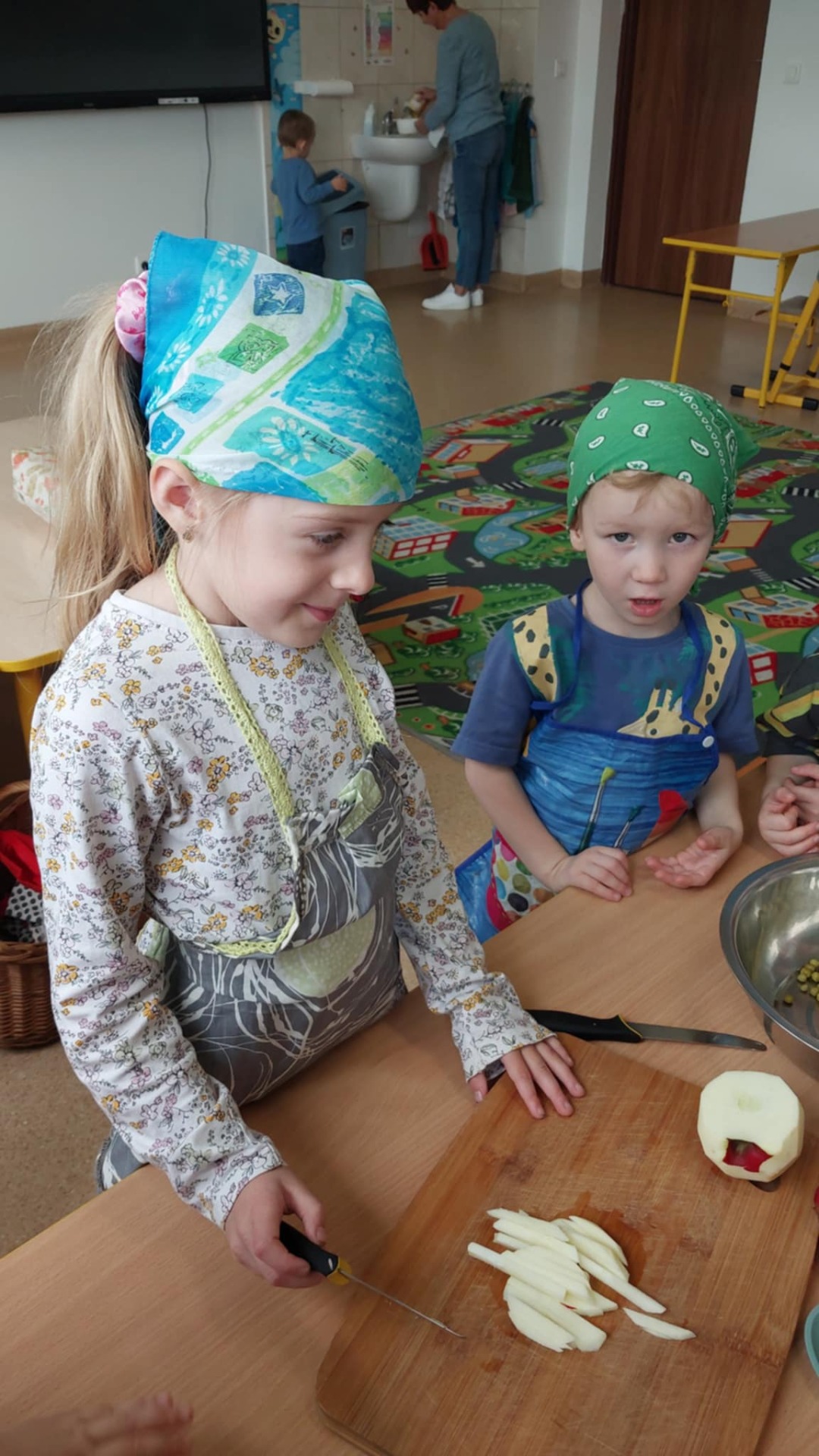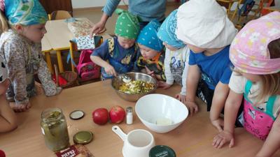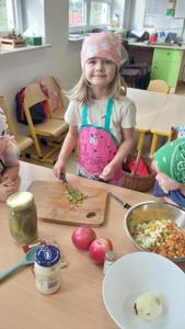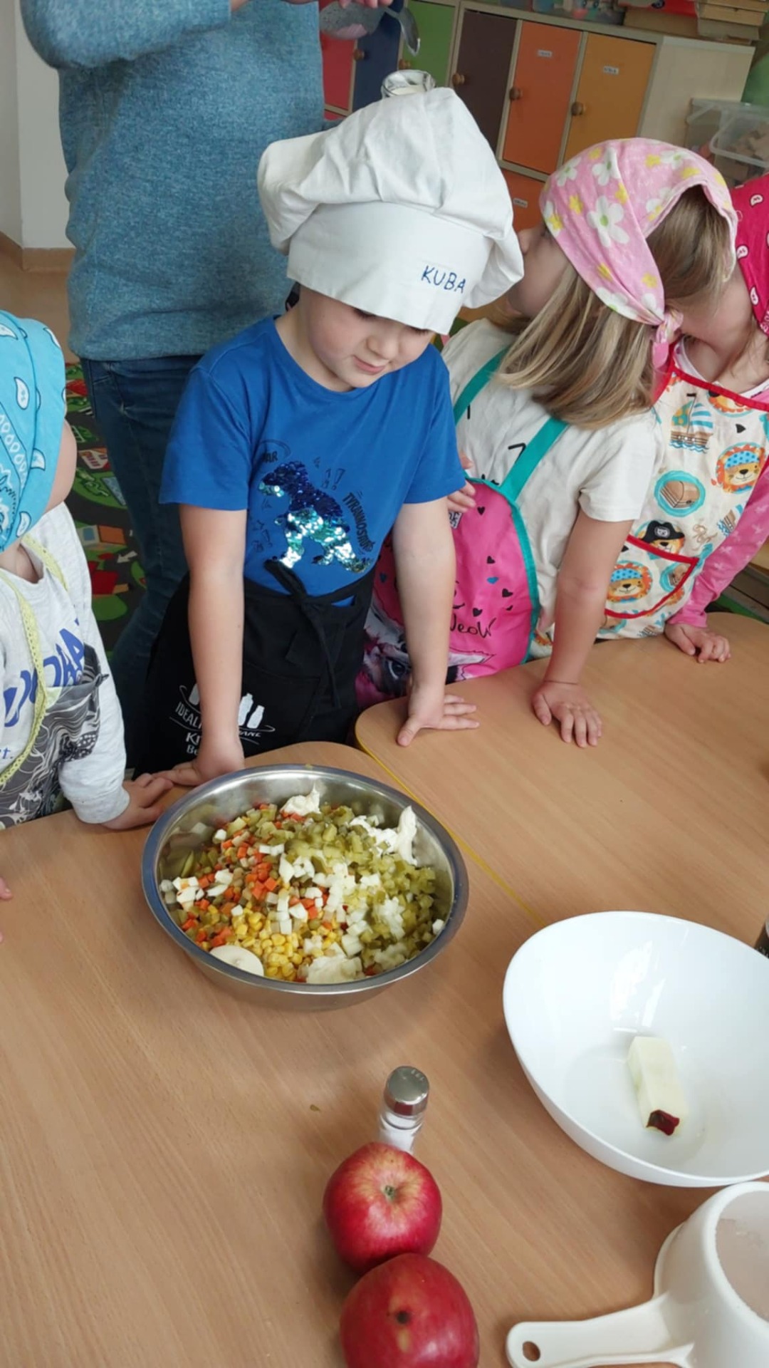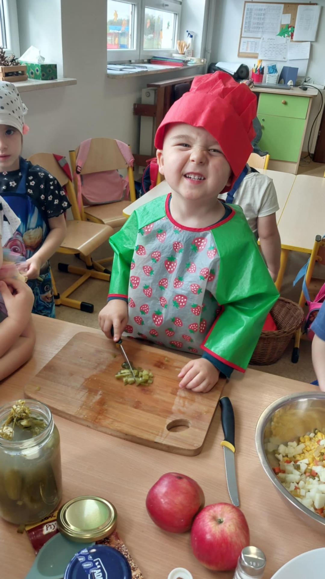 dzieci samodzielnie kroiły, mieszały i doprawiały składniki, pamiętając o zasadach bezpieczeństwa