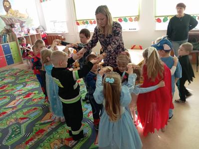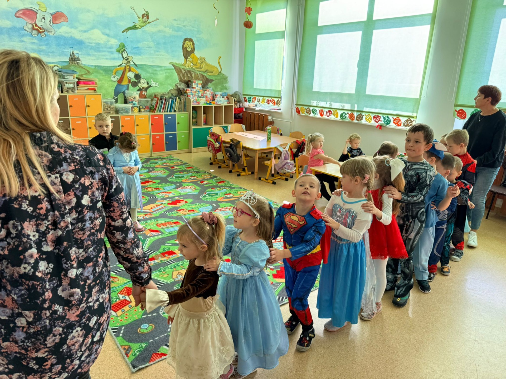 **, który wywołał wiele radości, a na zakończenie dnia dzieci udały się w bajkową podróż po przedszkolu, robiąc pamiątkowe zdjęcia