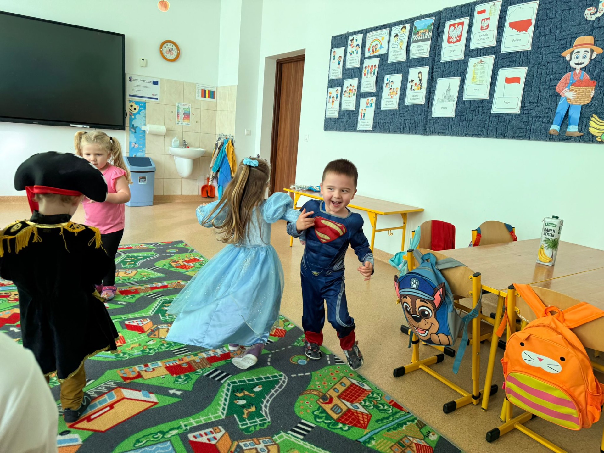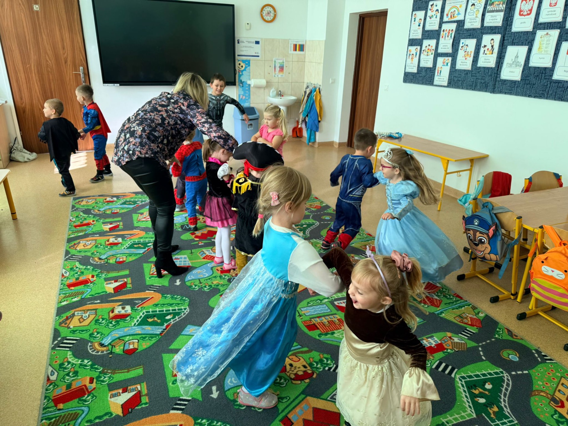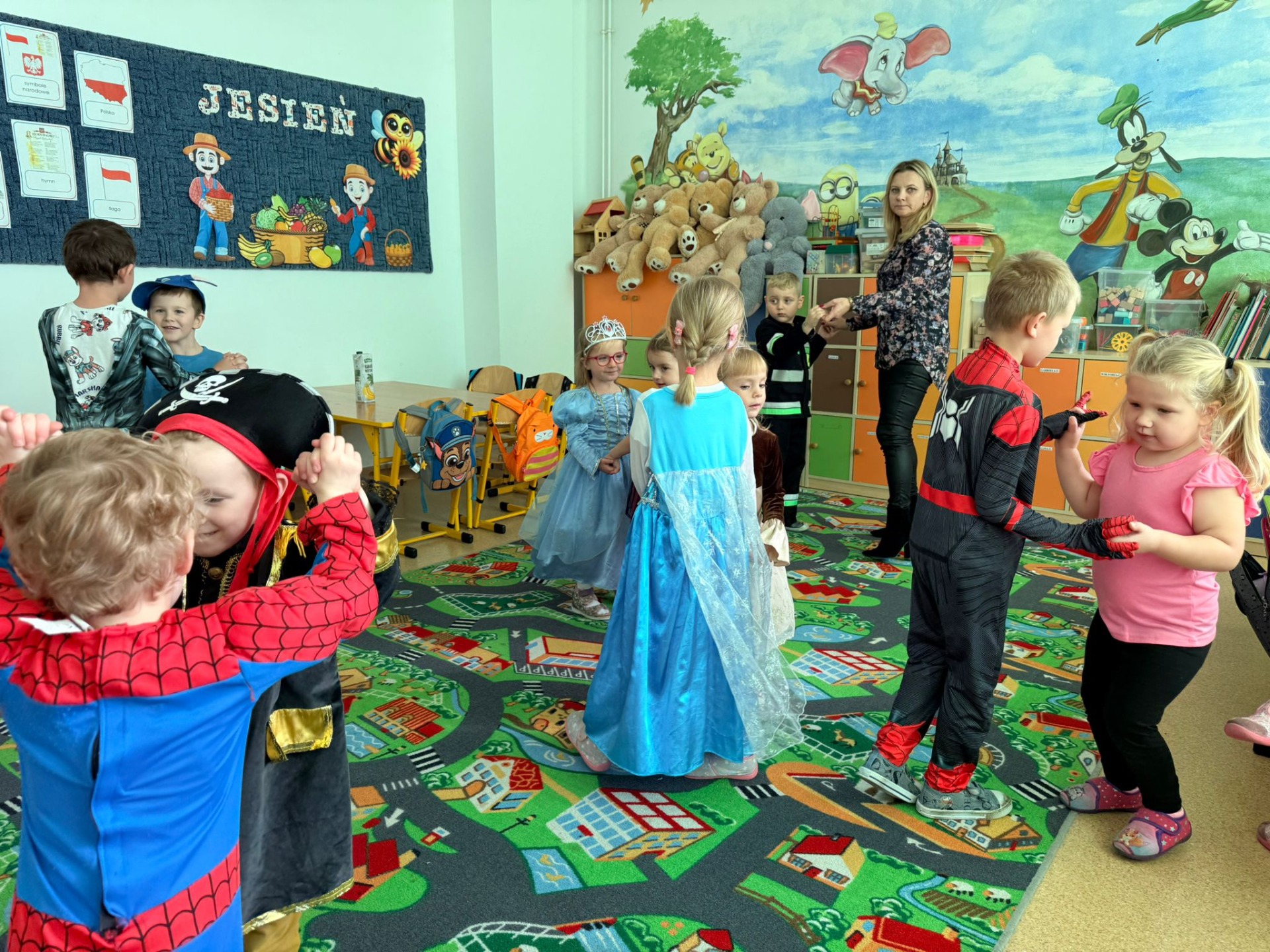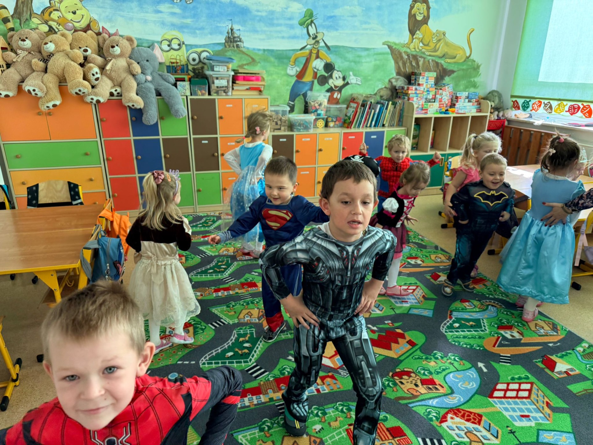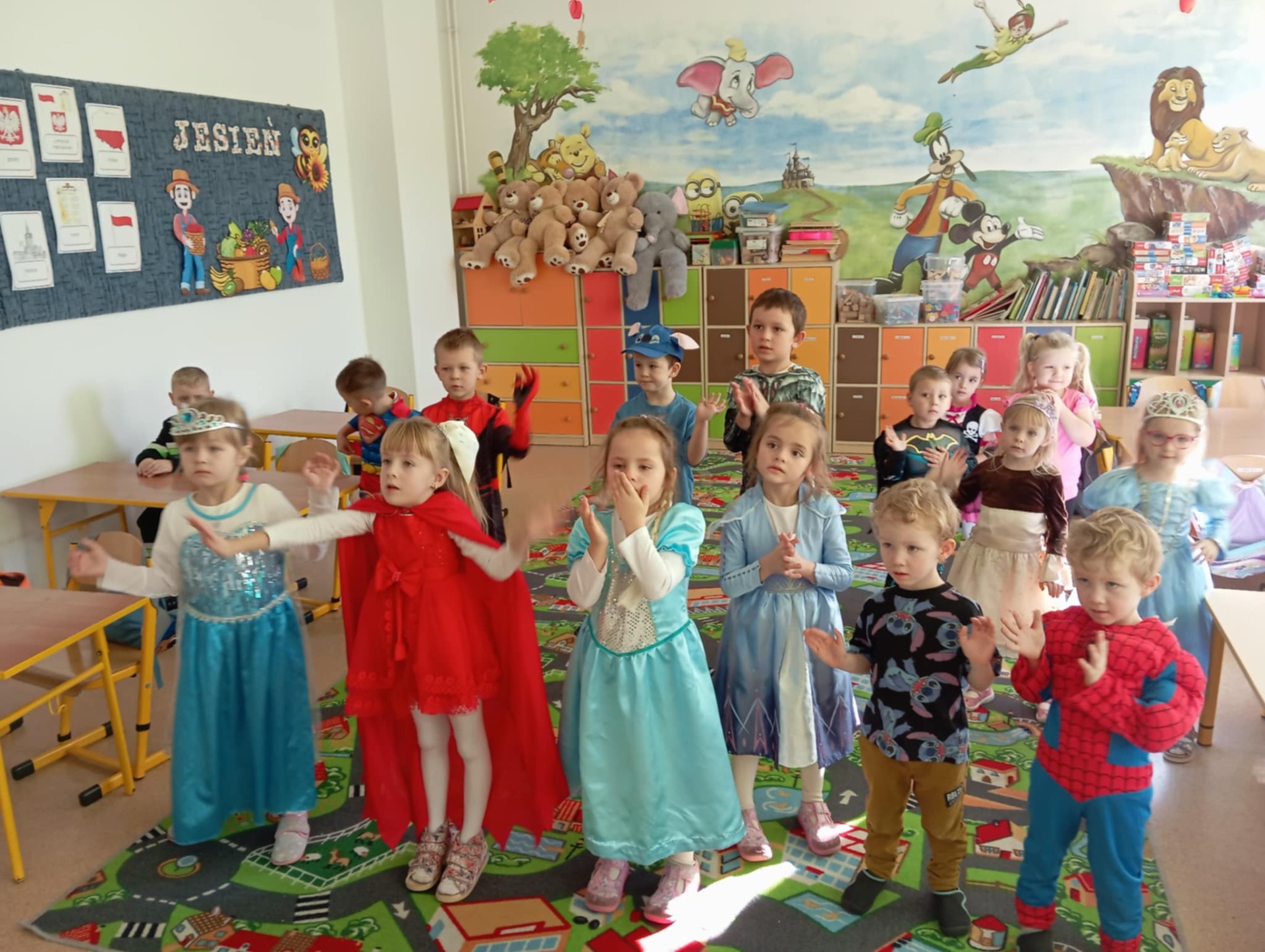 W tym dniu w przedszkolu królowały **kolory, śmiech i dobra zabawa!** Dzieci przebrane za swoich ulubionych bohaterów wzięły udział w: