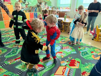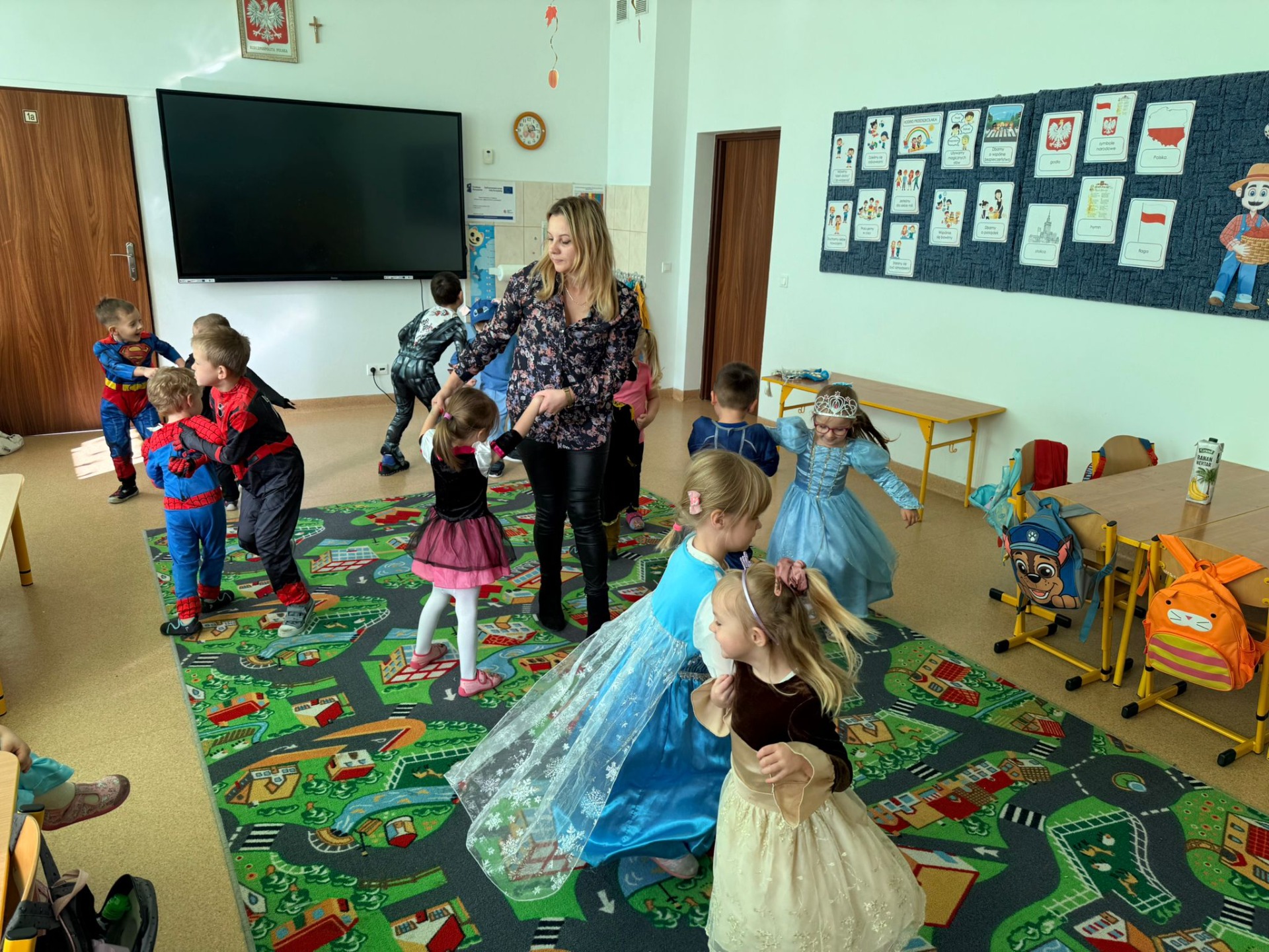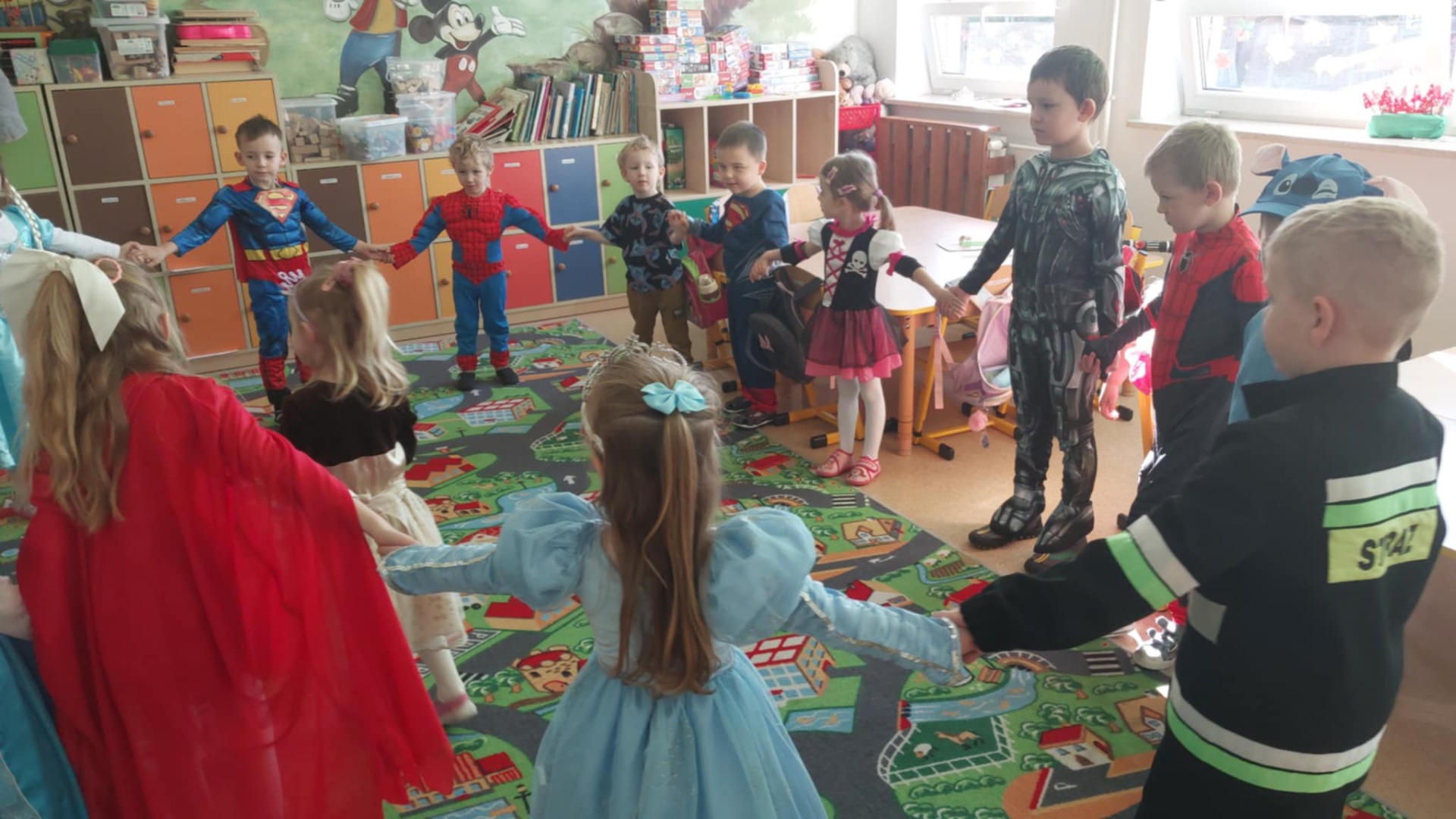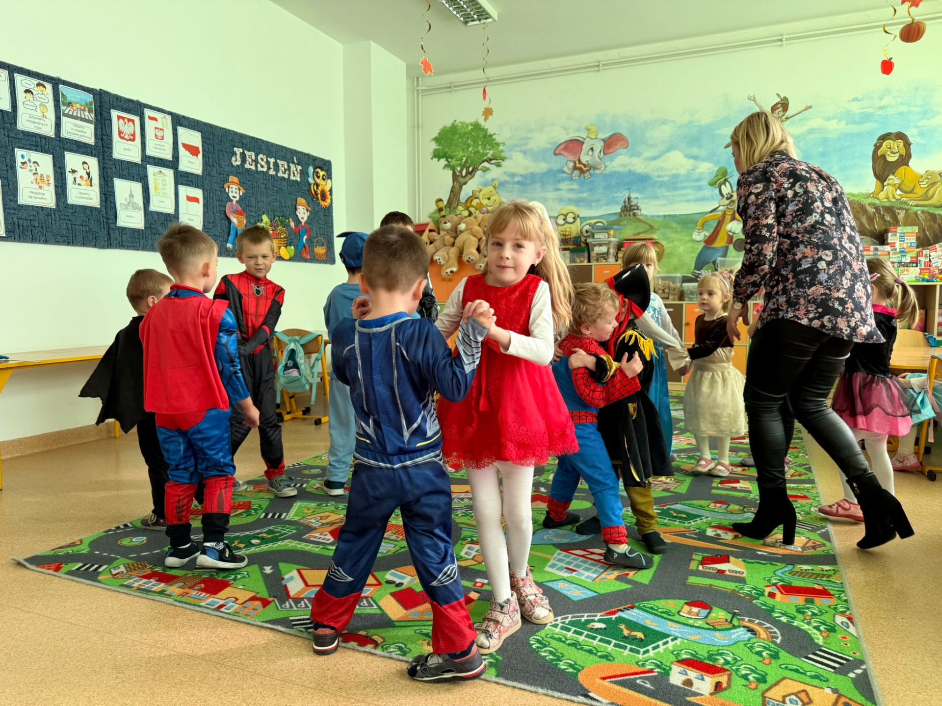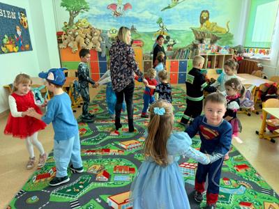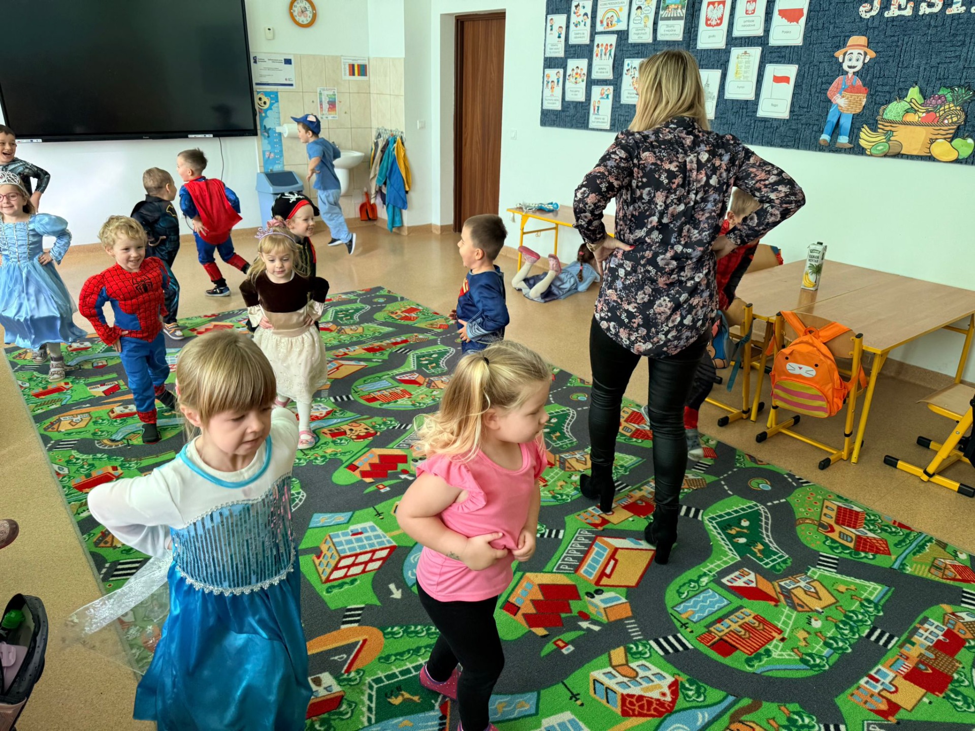 W tym dniu w przedszkolu królowały **kolory, śmiech i dobra zabawa!** Dzieci przebrane za swoich ulubionych bohaterów wzięły udział w: