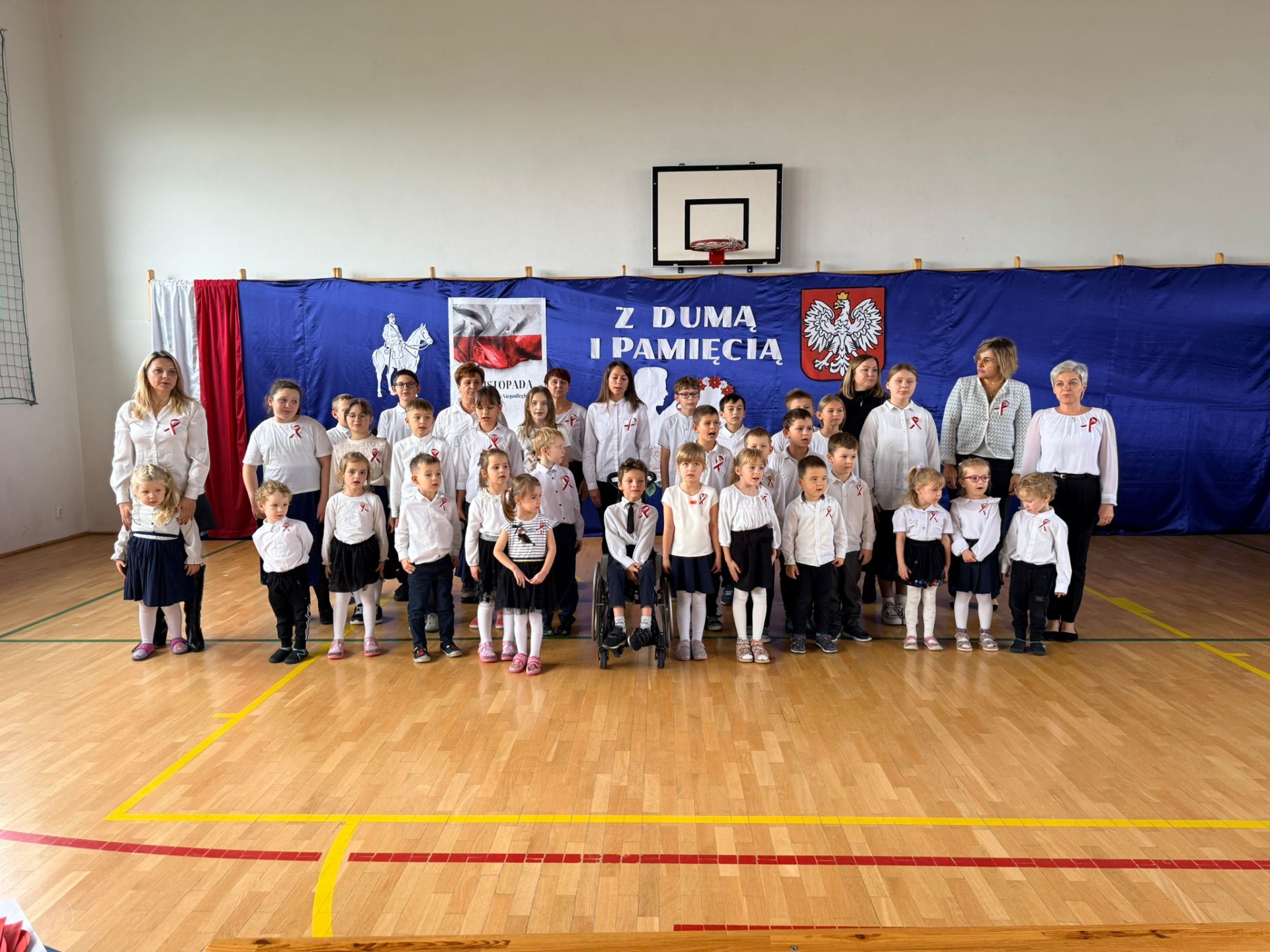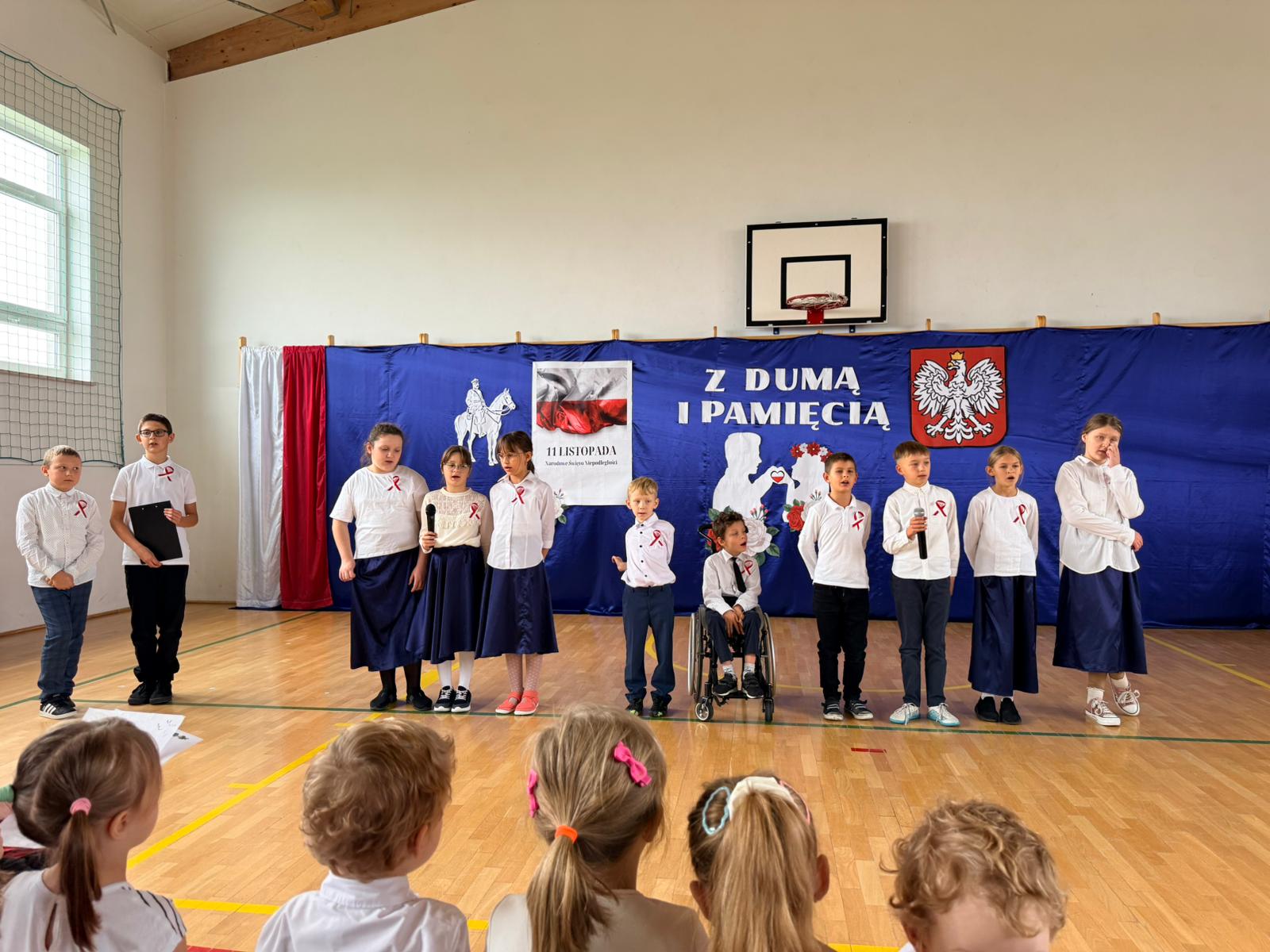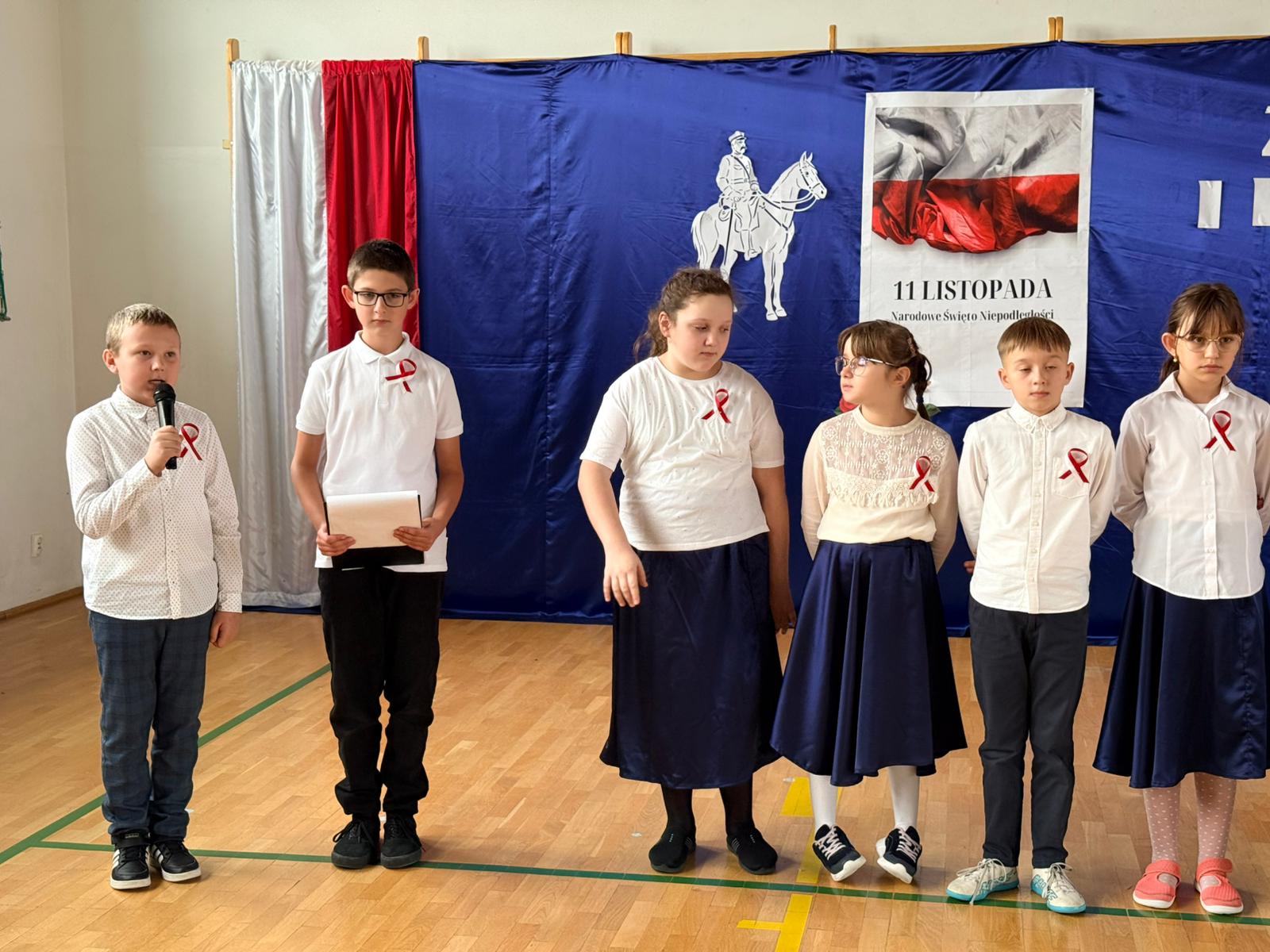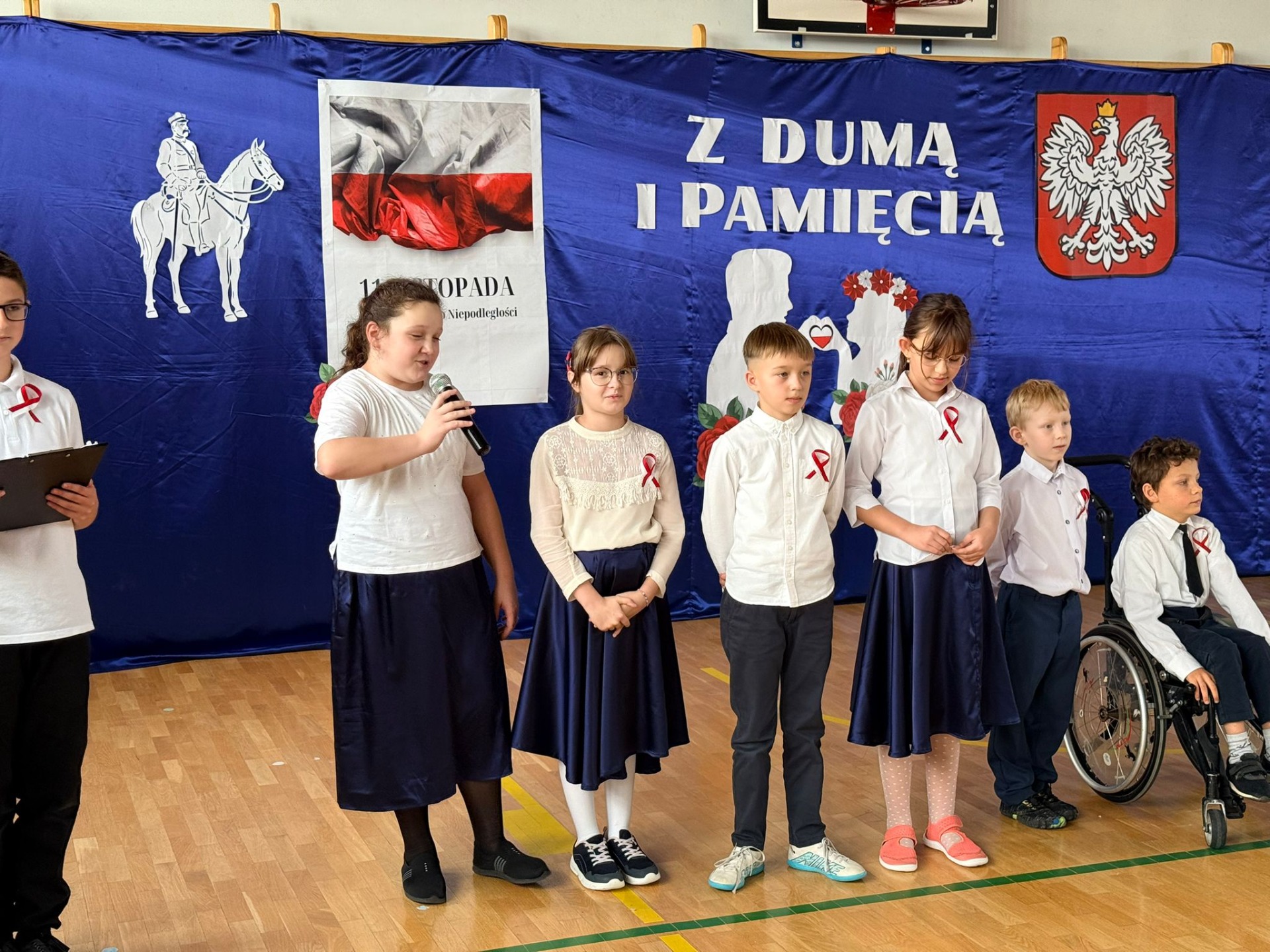 Na scenie zaprezentowali się przedszkolaki oraz uczniowie klas I–IV, którzy z ogromnym zaangażowaniem występowali, przypominając nam, jak ważna jest miłość do Ojczyzny. W rolę narratorów wcielili się nasi utalentowani recytatorzy z klasy V.