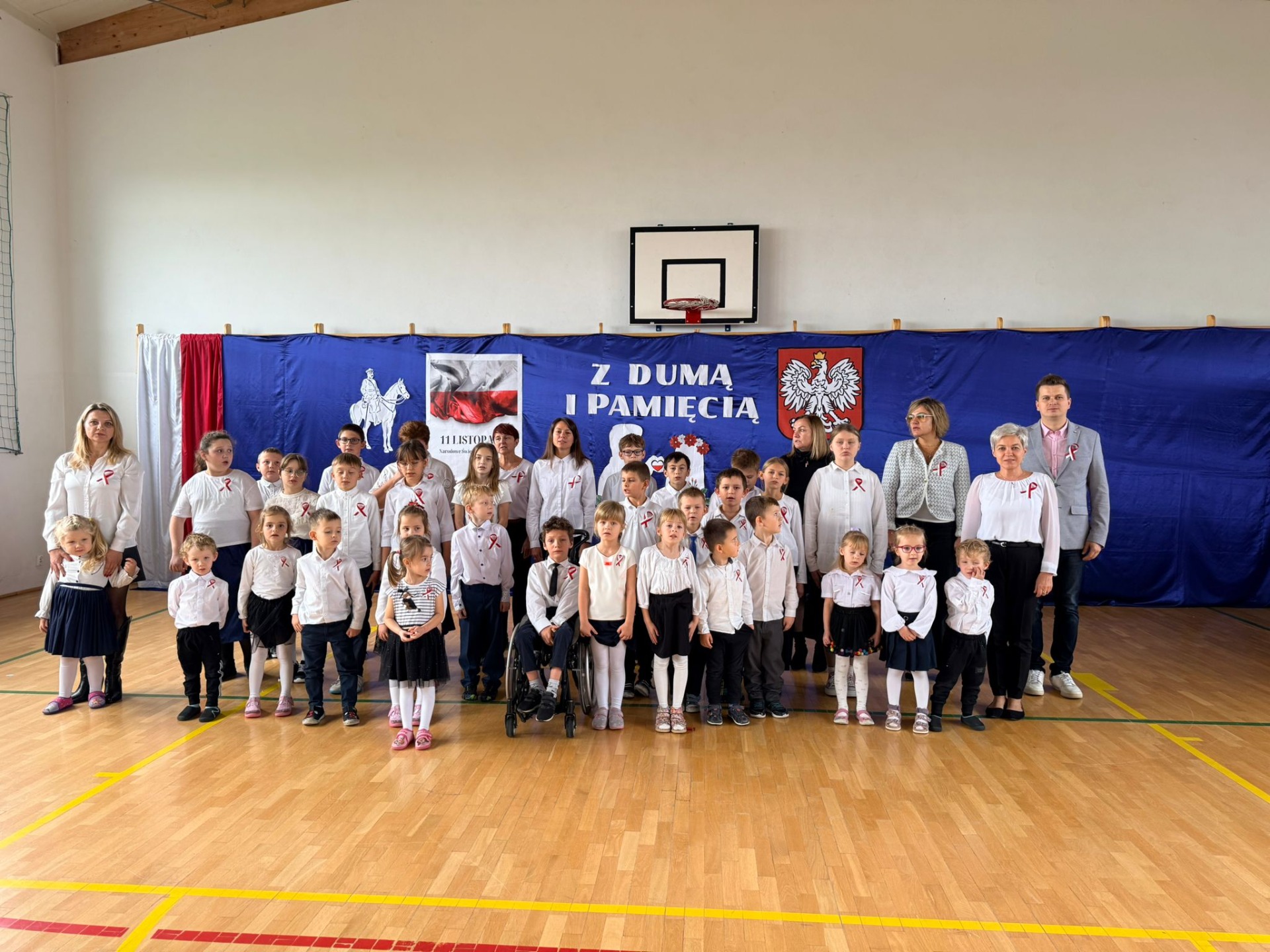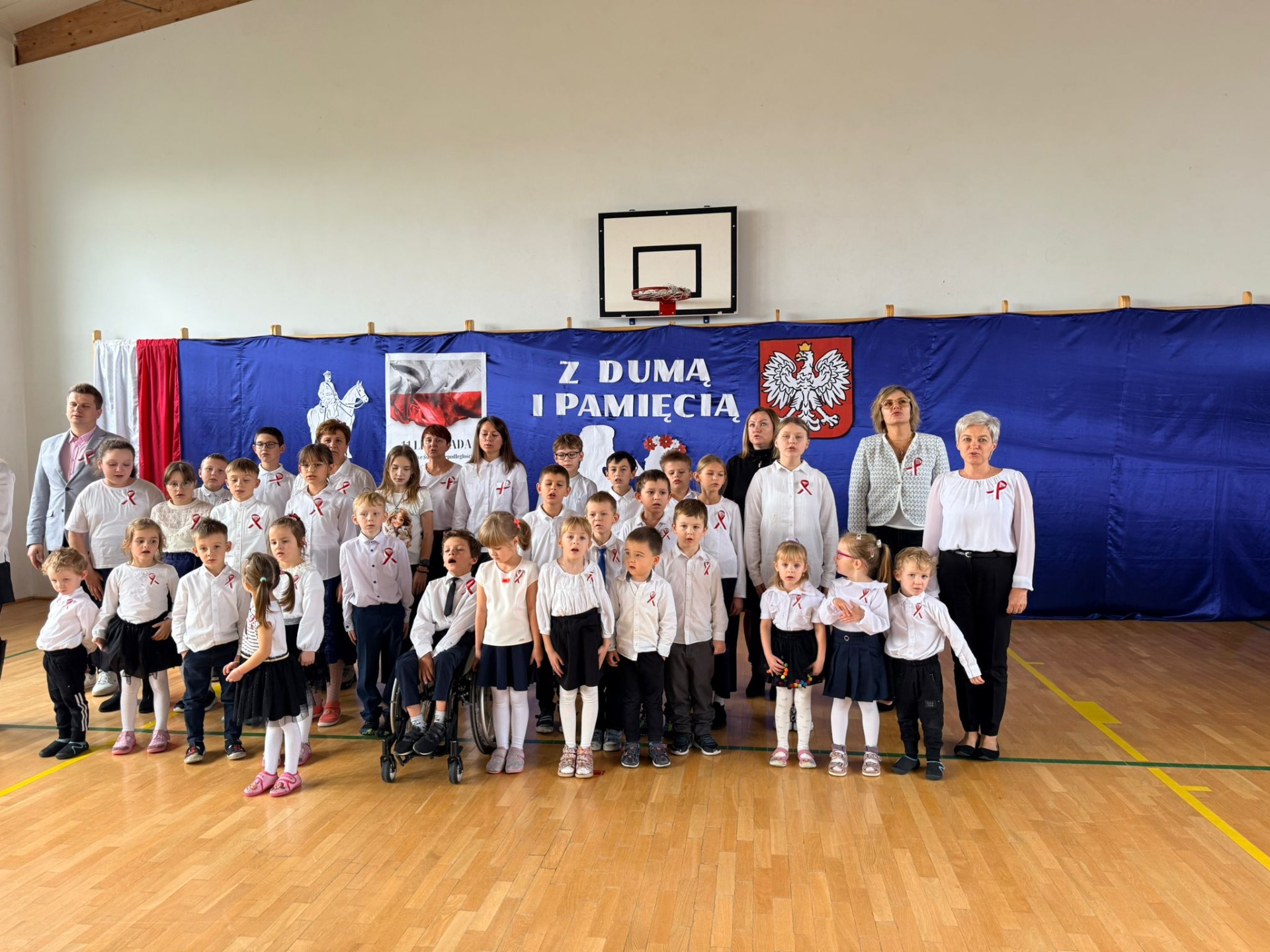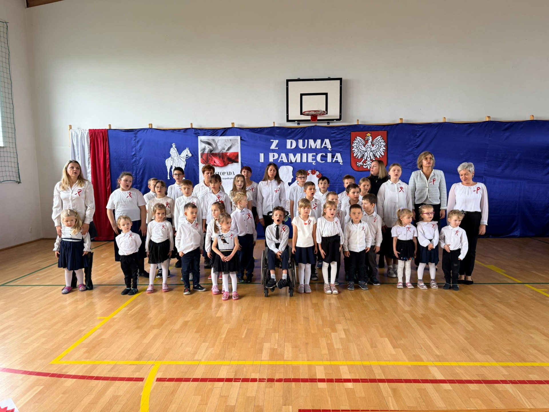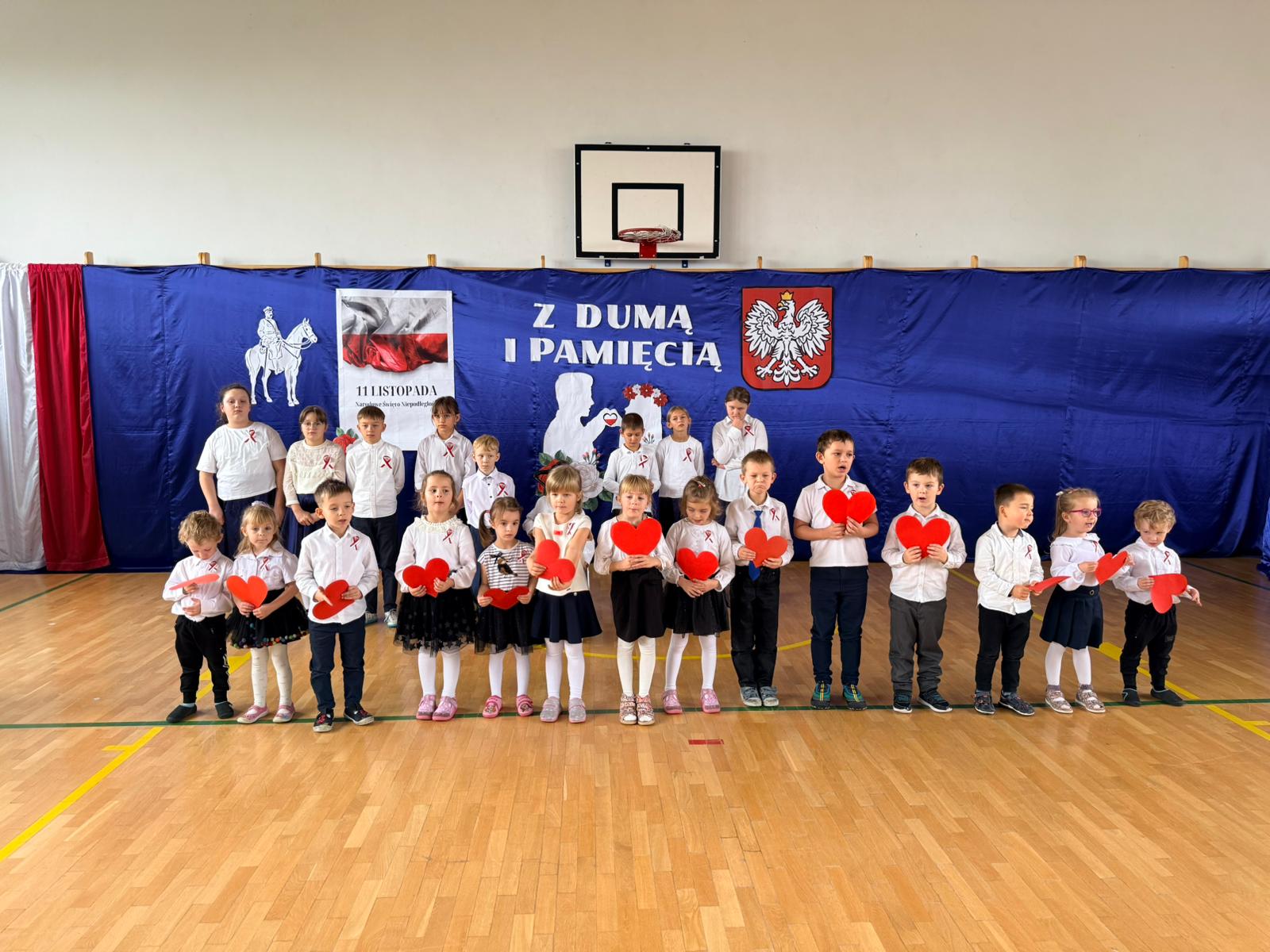 Na scenie zaprezentowali się przedszkolaki oraz uczniowie klas I–IV, którzy z ogromnym zaangażowaniem występowali, przypominając nam, jak ważna jest miłość do Ojczyzny. W rolę narratorów wcielili się nasi utalentowani recytatorzy z klasy V.