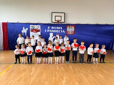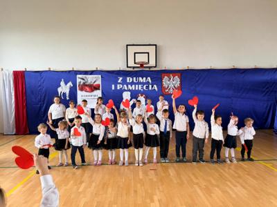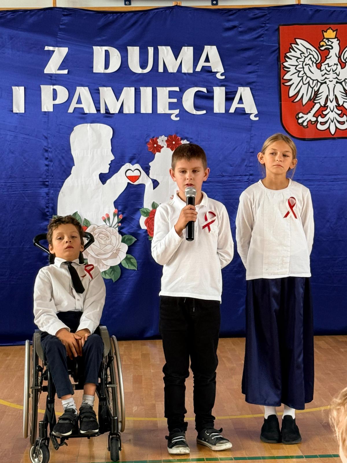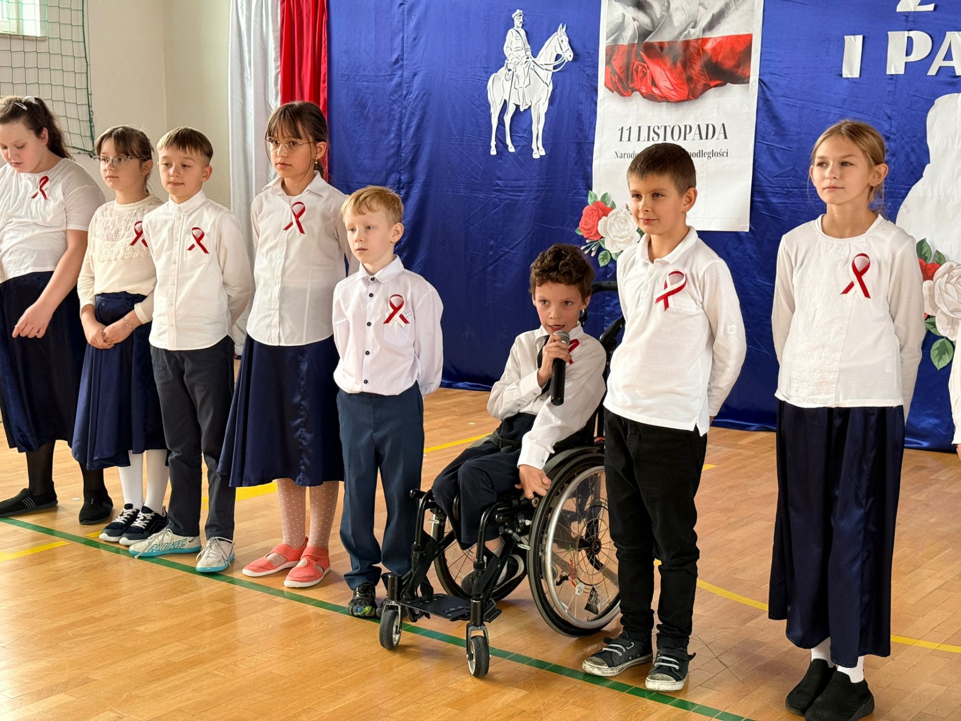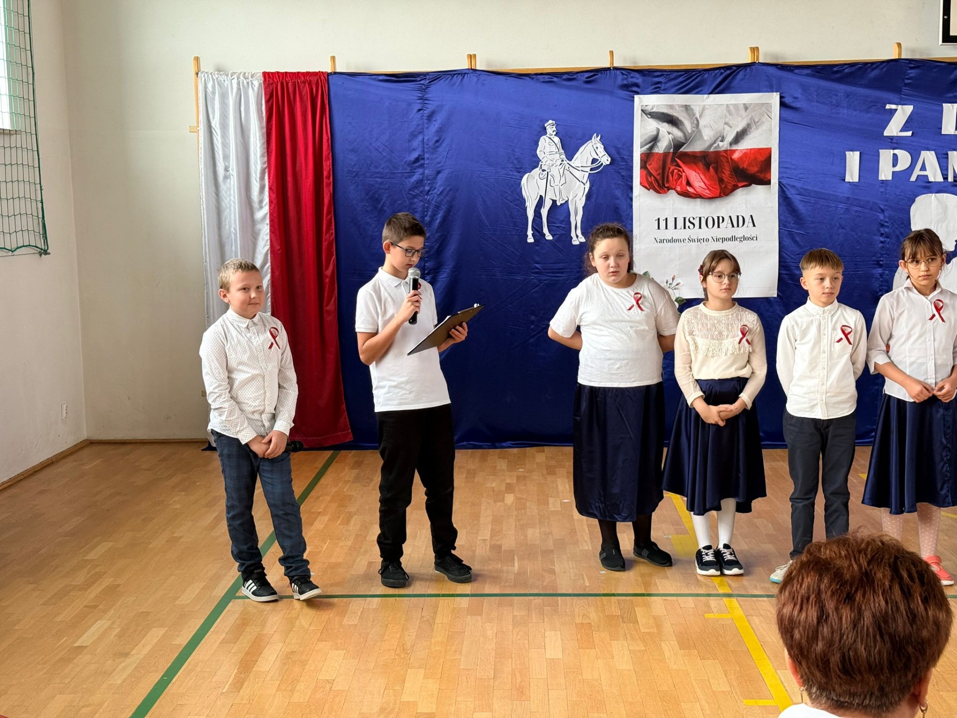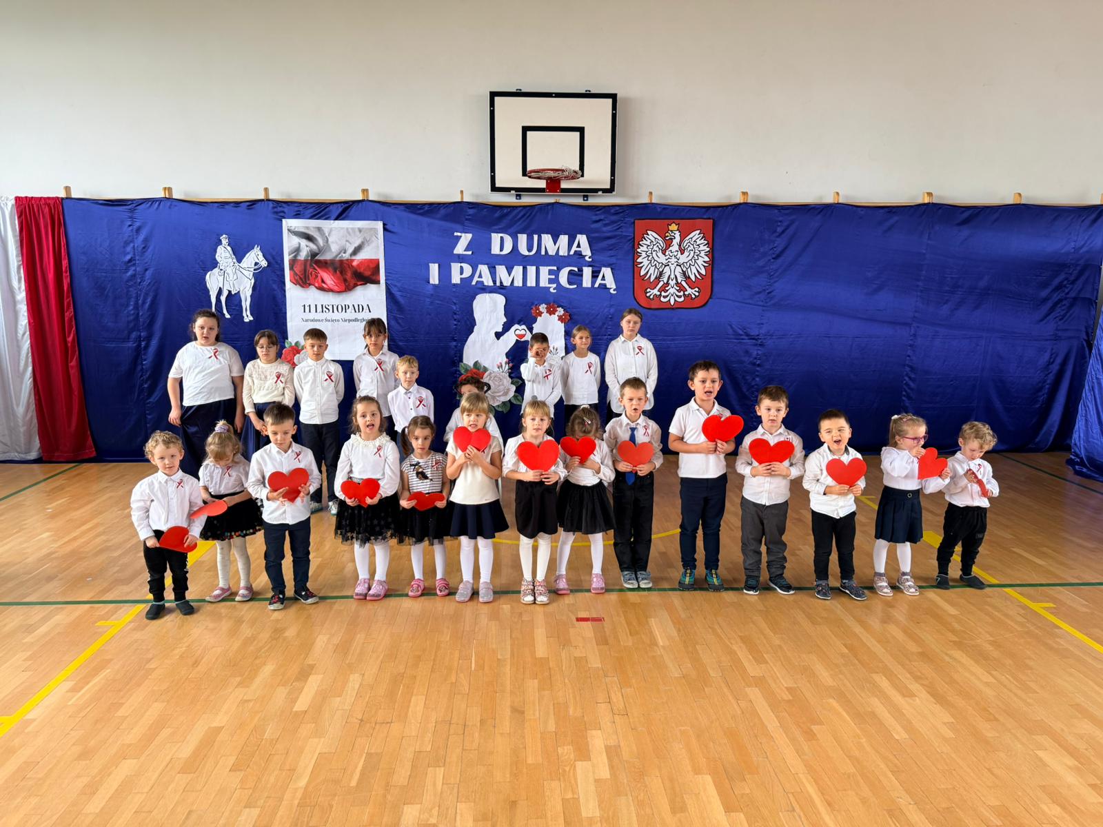 Na scenie zaprezentowali się przedszkolaki oraz uczniowie klas I–IV, którzy z ogromnym zaangażowaniem występowali, przypominając nam, jak ważna jest miłość do Ojczyzny. W rolę narratorów wcielili się nasi utalentowani recytatorzy z klasy V.