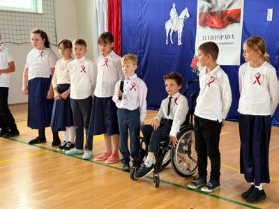 Apel, przygotowany przez panie Jolantę Grzesik i Małgorzata Padyjasek, miał wyjątkowo dostojny i podniosły charakter. Uczniowie recytowali wiersze patriotyczne i wykonywali pieśni, m.in. „Mazurek Dąbrowskiego” i „My, Pierwsza Brygada”.