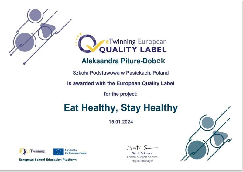17 stycznia 2024 Aktualności Europejska Odznaka Jakości za projekt eTwinning: "Eat... Otrzymaliśmy Europejską Odznakę Jakości za nasz ubiegłoroczny projekt eTwinning: "Eat Healthy, Stay Healthy"! Czytaj więcej
