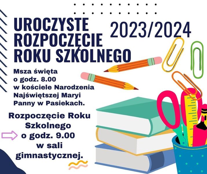 02 września 2023 Ogłoszenia Rozpoczęcie Roku Szkolnego 2023/2024 Zapraszamy na Uroczyste Rozpoczęcie Roku Szkolnego 4 września 2023 Czytaj więcej